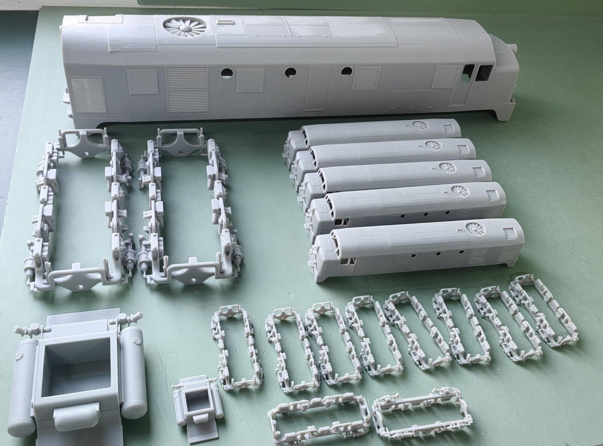 One or two of the late Bob Allan's 1:34 Dg kits, were supplied without a cab for the owner to build a new-cab version. Fortunately, the present owner being a man taste, wanted one as god intended. In the end it was decided to go with a complete body, with bogies and the fuel tank, based on the 750-769 batch built at Robert Stephenson & Hawthorns.